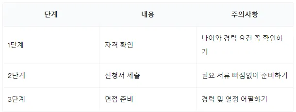 먼저 자격 요건을 확인해야 해요. 50세 이상 65세 미만이고, 관련 분야에서 3년 이상의 경력이 있다면 지원 가능해요.